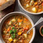 When reheating, I recommend doing so gently over low heat, adding a splash of vegetable broth if the soup has thickened too much. The lentils will continue to absorb liquid as it sits, which is completely normal.