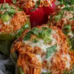 Vibrant roasted bell peppers packed with a creamy, spicy buffalo chicken filling made with shredded chicken, Greek yogurt, buffalo sauce, and melted cheese. A bold, low-calorie, high-protein dinner that is gluten-free and ready in just 45 minutes.