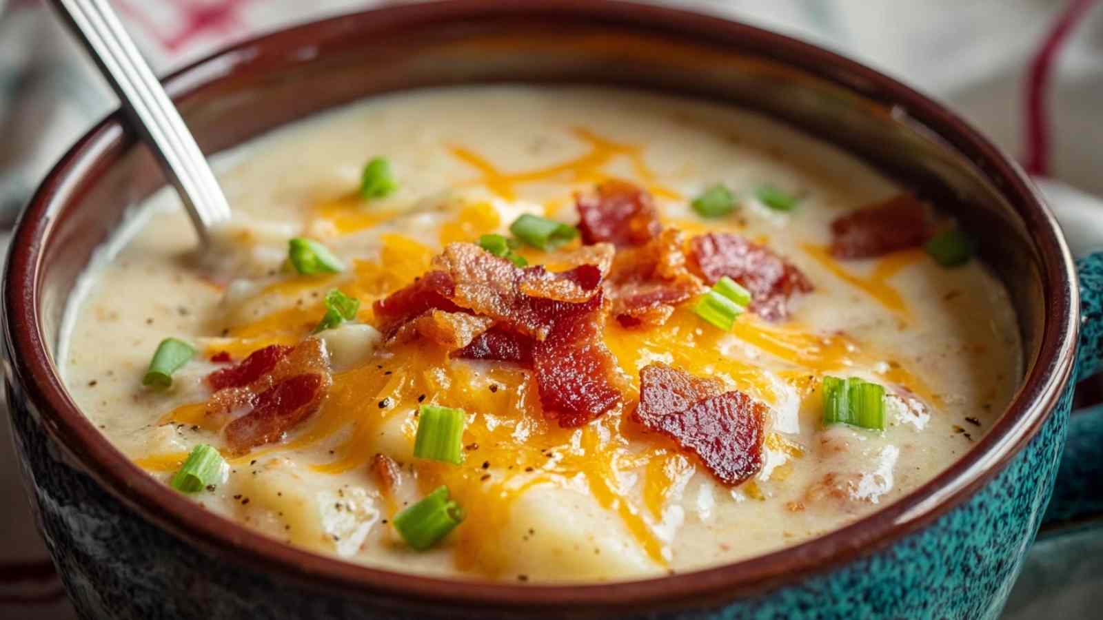 Step 8: Ladle the soup into bowls and top each serving with the remaining 1 cup of cheddar cheese, reserved bacon pieces, and sliced green onions or chives. The toppings add freshness and texture that really make this dish shine.