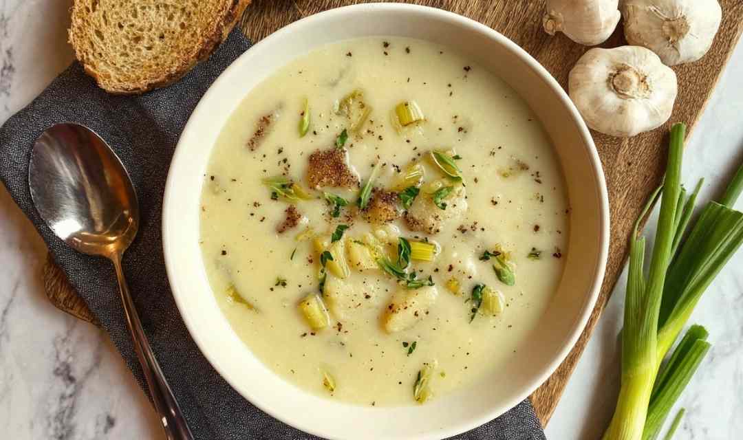 A warmly satisfying and easy to make soup with only 6 ingredients. Perfect comfort food with chunky potatoes and tender leeks in creamy broth.