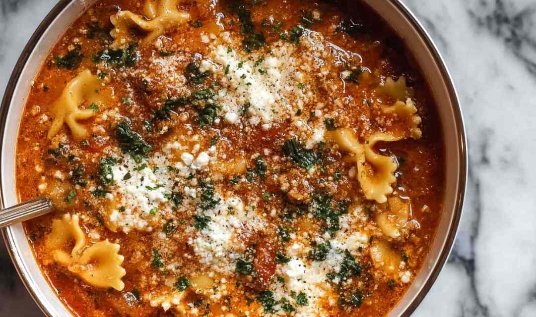 Comforting soup bringing all the flavors of classic lasagna into a simple weeknight friendly bowl. Rich tomato broth with tender pasta, creamy ricotta, and melted mozzarella. Ready in under 45 minutes.