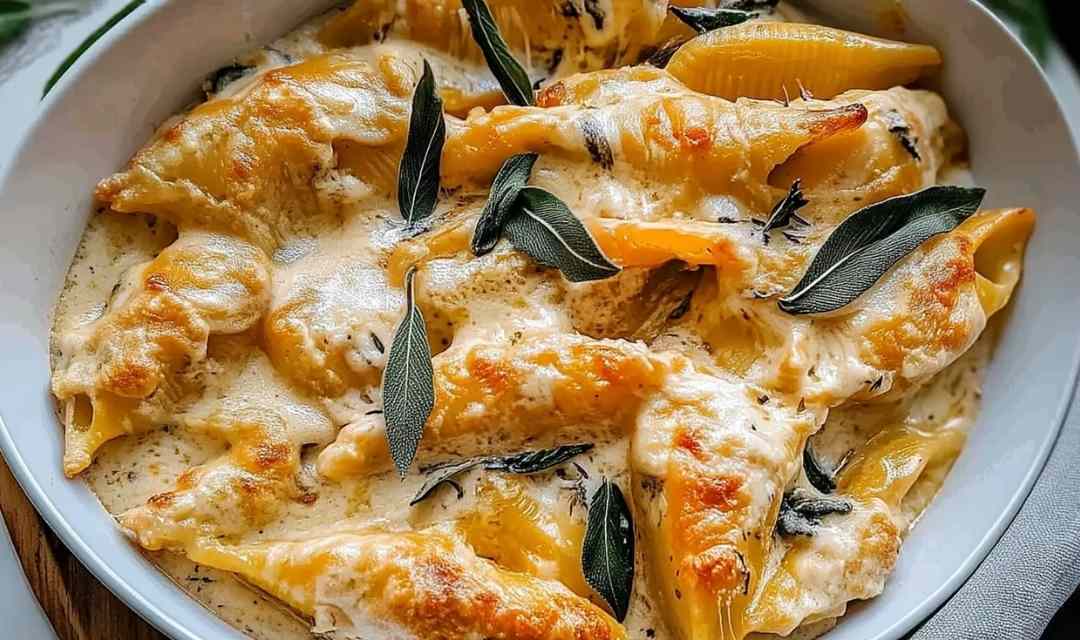 Pumpkin Gouda Stuffed Shells with Brown Butter Sage Alfredo Sauce