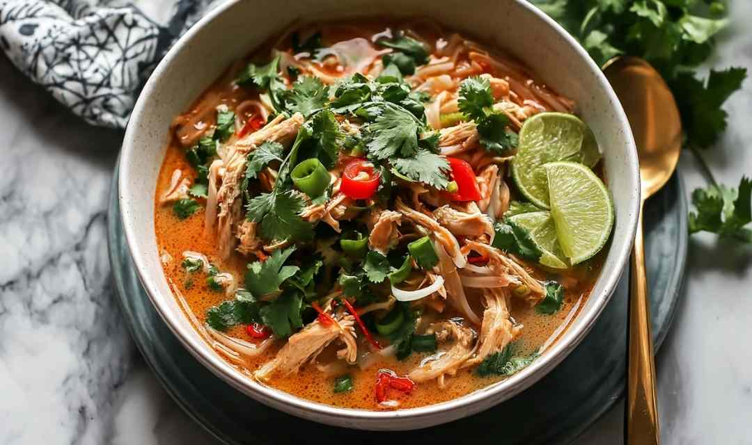 Flavorful, easy-to-make dish featuring tender chicken, aromatic red curry, creamy coconut milk, and silky rice noodles.