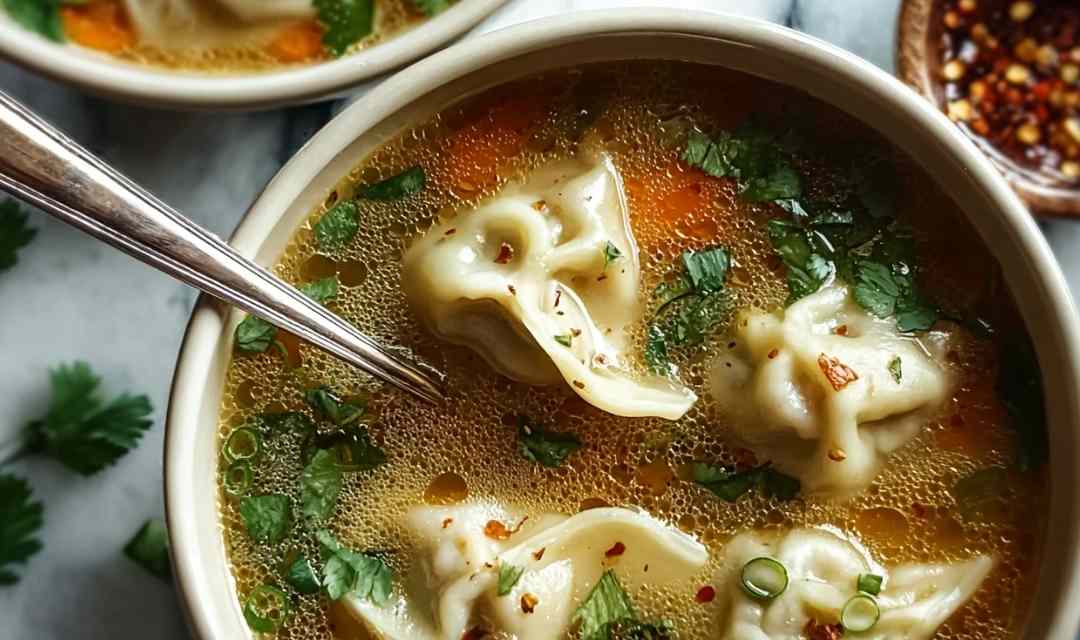 Step 7: Ladle the soup into bowls, making sure each serving gets a few potstickers. Garnish generously with fresh cilantro and sprinkle sliced green onions on top. Add red chili flakes if you like heat.