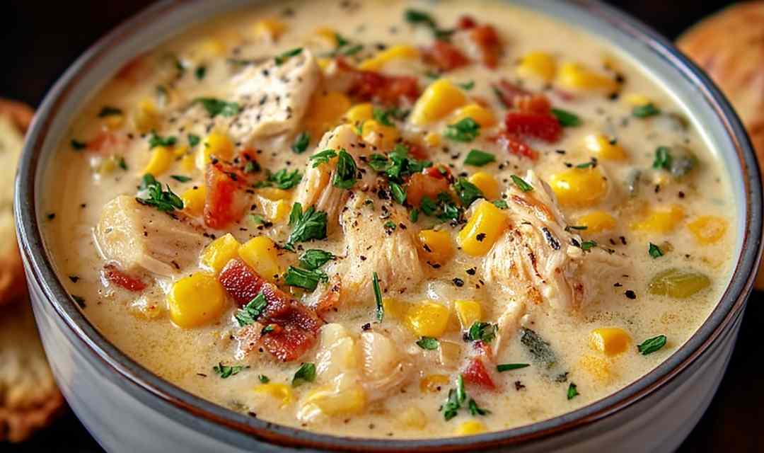 This rich and creamy Crockpot Chicken Corn Chowder is the perfect comfort food. With tender chicken, sweet corn, and potatoes in a savory broth, it’s a complete meal in a bowl.